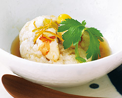 | あん | ダシ…100cc みりん…大さじ1/2 淡口醤油…小さじ1 水溶き片栗粉…大さじ1/2 柚子の皮…少々 三つ葉…少々 |