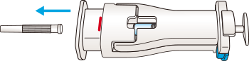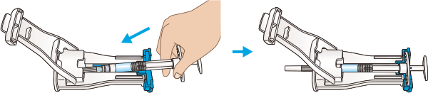 ④補助具のグリップを握りながら、プランジャーを一定の力でゆっくり押して薬液を注入します。