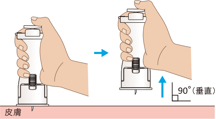 注射針を刺した角度を変えずに、薬液を注入してください。