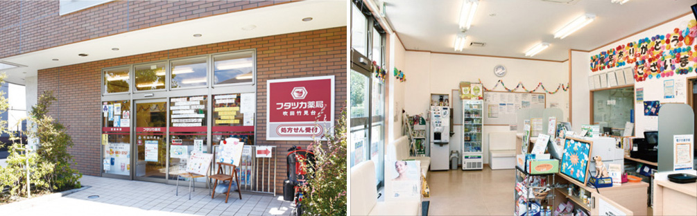 フタツカ薬局吹田竹見台店は、1960年代に開発された大阪府北部の住宅地、千里ニュータウン内に位置する。通院圏には大規模病院がいくつかあり、複数科の処方を応需する面分業型店舗である。周辺住民の高齢化に伴い、様々な疾患を併発して複数の医療機関・診療科を受診していることによる重複処方や多剤併用の懸念がある例や、独居や老老介護の状況下における認知症などコンプライアンス(CP)低下例も少なくない。