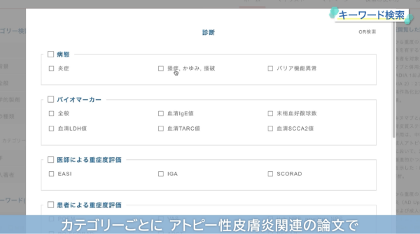 - よく使われるキーワードに基づき効率的に臨床研究などの論文を探せます