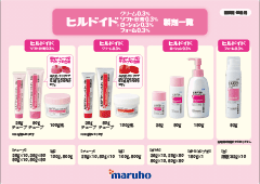 ヒルドイドの使用量の目安に加え、部位別・年齢別の1回使用量・1週間使用量をイラストや表を用いて記載した医療関係者向け白衣サイズのポケットカードです。
